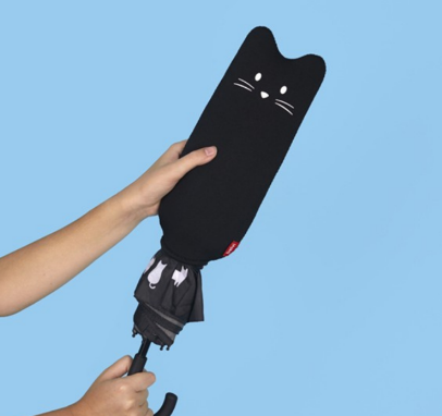 Përqafo ditët me shi me stil dhe purr-sonalitet! Kjo çadër ka një model të adhuruar të maceve në brendësi dhe vjen me një çantë të butë neoprini që ka formën e një macë të plotë. Doreza përfundon pamjen, duke krijuar iluzionin e një bisht macëje të ngjitur. Një aksesor praktik që sjell gëzim, shi ose diell. Kombinimi i funksionalitetit dhe dizajnit të maces i jep çdo ditë me shi një prekje të veçantë . Vjen në permasat: 31×11,5×6 cm