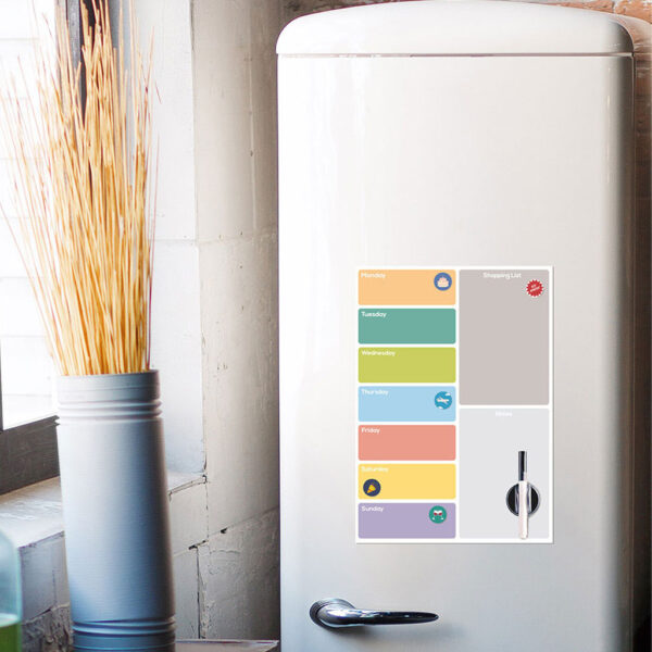 Një shtesë praktike dhe stilizuar për kuzhinën tuaj që mban javën tuaj të organizuar dhe plot ngjyra. Ky planifikues nuk është vetëm për planifikimin e aktiviteteve, por është një zgjidhje e plotë organizimi e krijuar për të thjeshtuar jetën tuaj. Me një dizajn të ngjyrave të ndezura për çdo ditë, ky planifikues është ideal për të mos humbur asnjë datë të rëndësishme dhe për të mbajtur kuzhinën tuaj të organizuar pa mundim.Përfshihen 5 magnete për raste specialeSet i plotë: vjen me një marker të zi dhe fshirësen