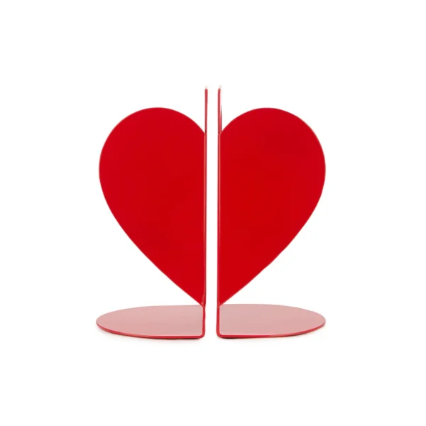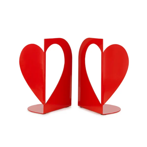 Mbani raftet tuaja të rregullta dhe zemrën plot me këtë set prej dy mbajtësish librash në formë gjysmë-zemre të kuqe. Tërheqës për syrin, funksionalë dhe plot humor, ata i japin gjallëri çdo hapësire dhe janë dhurata perfekte për të dashurit dhe miqtë.Të punuar nga metal cilësor dhe rezistent vjen në përmasat 16x10x10 cm.