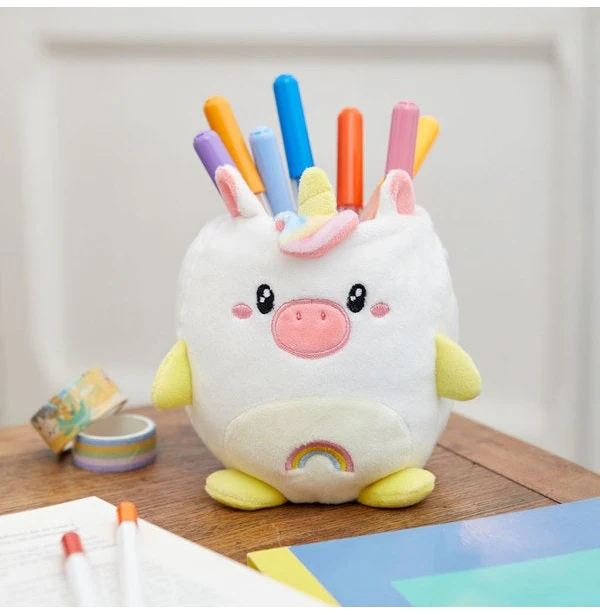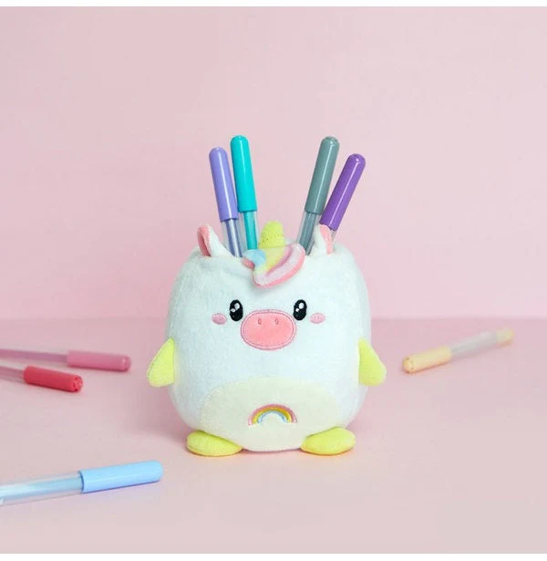 Ky mbajtës lapsash mban lapsat, stilolapsat dhe furçat në një vend të organizuar dhe tërheqës. I butë, me ngjyra dhe i fortë, ai sjell një prekje magjie dhe stil në çdo tavolinë, perfekt për ëndërrimtarë të vegjël dhe të rritur, adhurues të njëbrirëshve ose thjesht të gjithë ata që duan një aksesor funksional dhe të bukur.Material i butë dhe i këndshëm për tu prekur, i lehtë për t’u pastruar .I lehtë, por i fortë dhe i qëndrueshëm .Struktura e brendshme e heqshme mban formën e mbajtësit .Perfekt për lapsa, stilolapsa, furça dhe aksesorë të tjerë tavoline vjen në përmasat 11,5×11,5×11,5 cm