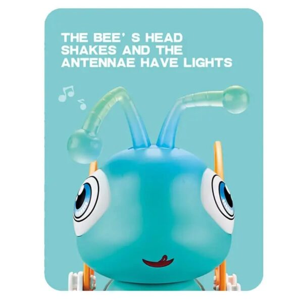 Kjo lodër muzikore Cute Bee është një shok argëtues dhe edukativ për fëmijët. E pajisur me drita, lëvizje dhe efekte zanore, kjo bletë e vogël sjell shumë kënaqësi dhe stimulim për shqisat e foshnjës. Koka dridhet, antennat ndriçojnë, dhe këmbët e krahët lëvizin, duke krijuar një lojë dinamike dhe tërheqëse.Me një rrotë 360° në pjesën e poshtme, lodra ndryshon drejtimin automatikisht kur përplaset me pengesa, duke inkurajuar fëmijët të ndjekin lëvizjen dhe të zhvillojnë koordinimin sy-dorë, perceptimin e prekjes dhe aftësitë vizuale.Kjo lodër është ideale për lojë edukative dhe argëtuese, duke kombinuar muzikë, drita dhe lëvizje për të stimuluar zhvillimin e hershëm të fëmijëve.