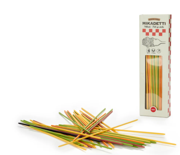 Testoni dorën tuaj të qëndrueshme me këtë Mikado të frymëzuar nga Italia! Ngrini shtyllat e ngjyrosura si spaghetti pa lëvizur të tjerat, duke grumbulluar pikë sipas ngjyrës. I paketuar si një kutie paste, ky është një sfidë argëtuese për adhuruesit e lojërave, tifozët e pastave dhe çdo person që dashuron Italinë! Ideal për të kaluar kohë të këndshme me miqtë dhe familjen.