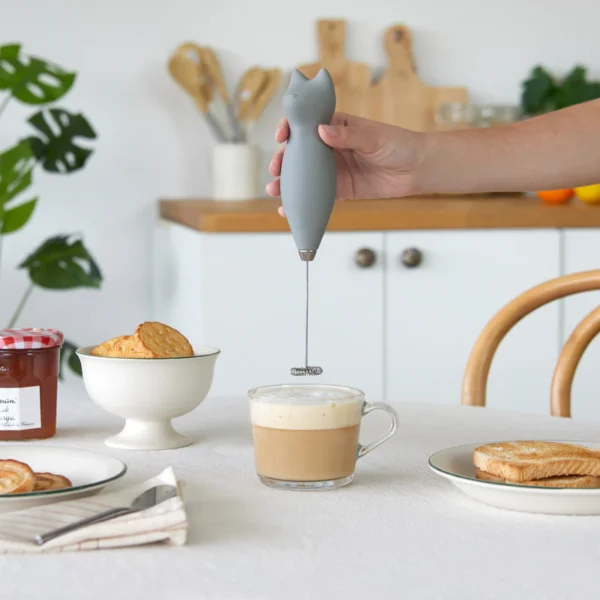 Nga kafeja tek çaji dhe matcha, ky frother në formë maceje krijon pije kremoze, duke i shtuar një prekje lozonjare kuzhinës suaj. Dizajni i bukur i macës ndriçon gjithçka në banakun tuaj dhe e bën përdorimin një kënaqësi. Çeliku i pandryshkshëm i rrahëses siguron performancë të shkëlqyer, ndërsa operimi me dy bateri AA (jo të përfshira) e bën edhe më të lehtë për t’u përdorur.. Me përmasat 24×7,8×7,8 cm, është një aksesor i shkëlqyer për çdo kuzhinë që dëshiron të sjellë një atmosferë argëtuese dhe funksionale.