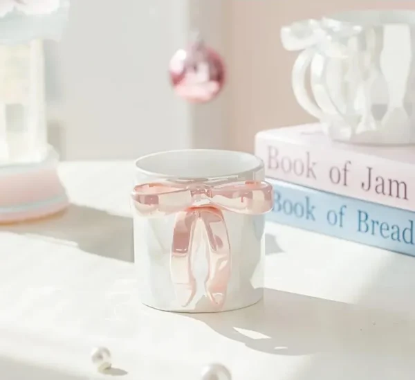 Sillni elegancë festive në çdo ditë me filxhanët e mrekullueshëm të çokollatës së nxehtë me dizajn të veçantë ma shirit dekorativ. Me një dorezë të skalitur në formë fjongo dhe nuanca të buta pastel, këto filxhanë shtojnë finesë dhe stil në përvojën tuaj të përditshme të kafesë ose çajit.I prodhuar nga qeramika e cilësisë së lartë, secili filxhan ka një përfundim të lëmuar dhe me shkëlqim që ofron rezistencë dhe qëndrueshmëri. Ky dizajn unik e bën filxhanin një ide të mrekullueshme dhurate për ditëlindje, përvjetorë, festa dhe çdo rast të veçantë duke shtuar ngrohtësi në kuzhinën tuaj ose duke zbukuruar një tryezë festive.