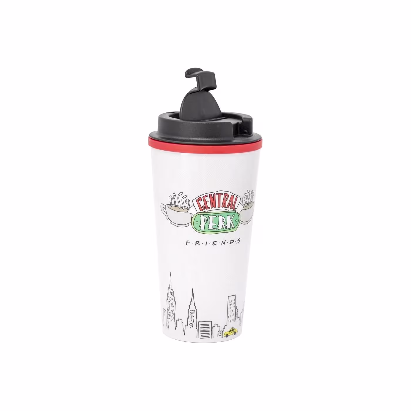 Gotë për kafe me funksion termo,për përdorim në lëvizje. Me dizajn të plotë nga Central Perk dhe panorama e skyline të New York-ut, kjo gotë e dyfishtë mbajnë pijen tuaj të ngrohtë apo të ftohtë më gjatë dhe ka një bazë gome që e mban të qëndrueshme.Kapaciteti prej 450 ml siguron mbushje të bollshme dhe është e sigurt për përdorim në mikrovalë për momentet kur keni nevojë për diçka të shpejtë. Përshtatshme për kampus, zyra, udhëtime, ose për të shijuar një maratonë Friends në divan. Material plastike (BPA pa rrezik). Perfekte për ata që duan ta marrin shijen e Central Perk ku do që të shkojnë!