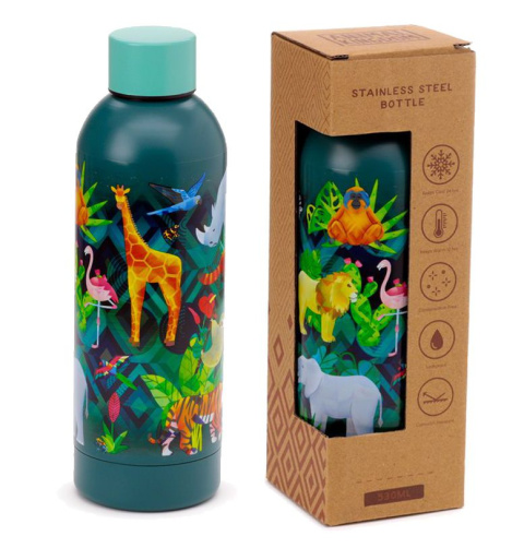 Shishja Animal Kingdom për pije të nxehta dhe të ftohta 530ml është e dizajnuar për të kombinuar funksionalitetin me një stil tërheqës. E prodhuar nga çelik inox, polipropilen dhe silikon, është e sigurt për ushqim, pa BPA dhe e ripërdorshme. Ndërtimi me dy mure termoizoluese ruan pijet e ftohta deri në 24 orë dhe të ngrohta deri në 12 orë. Nuk rekomandohet për larje në lavastovilje. Kapaciteti: 530 ml. Përmasat: 22.5 x 7 x 7 cm.