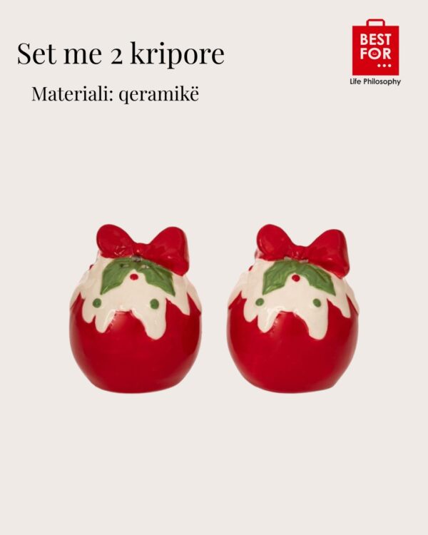 Shtoni një prekje festive në tryezën tuaj të Krishtlindjeve me këtë set kripë dhe piper me dizajn të kuq.Ajo krijojnë një atmosferë të ngrohtë dhe festë në çdo darkë të Krishtlindjeve.Qeramikë e qëndrueshme, e njohur për cilësinë dhe detajet e saj të ndritura.Ky set është i përshtatshëm për të shtuar një prekje të veçantë dhe të festuar në shtëpinë tuaj ose si një dhuratë ideale për ata që adhuroni ornamentet e Krishtlindjeve.